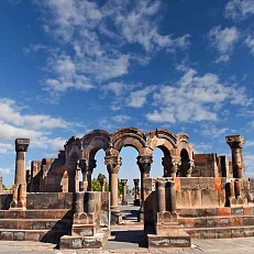 Экскурсия к необыкновенному по красоте языческому храму Солнца (I в. н. э.) в селении Гарни. Построенный в греческом стиле с характерной колоннадой со всех сторон и расположенный на вершине холма, разделенного от горной гряды глубоким ущельем, он представляет собой необыкновенное по своей красоте зрелище, кажущееся порой нереальным. Крепость Гарни служила летней резиденцией Аршакидского царского двора. Разрушенный сильным землетрясением в 1679г., позднее в 1969-1974гг. храм был отреставрирован. Сохранилась часть стены крепости, окружавшей храм, а также руины царского дворца и бани. Интересен мозаичный пол предбанника и надпись на нем: "Работали, не получив ничего". Сохранились надписи на греческом языке, из которых следовало, что храм был построен в 77г. н. э. царем Трдатом I (Аршакидская династия).